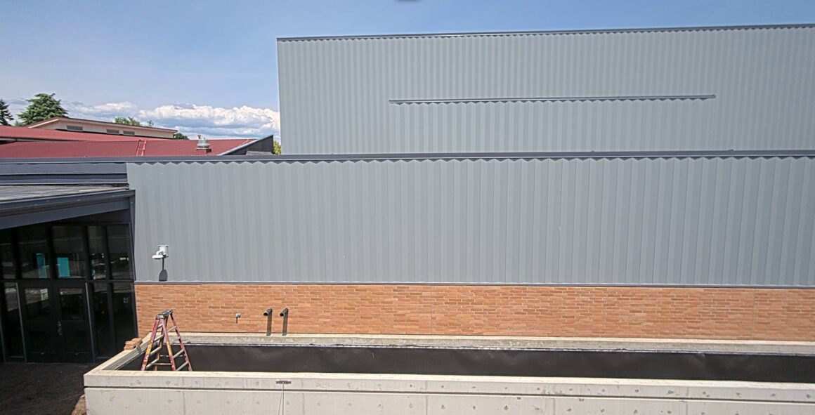 The new high school gym is really starting to shine. The floor is finished, the murals are up, the bleachers are in, and it’s looking more like a finished space every day.
